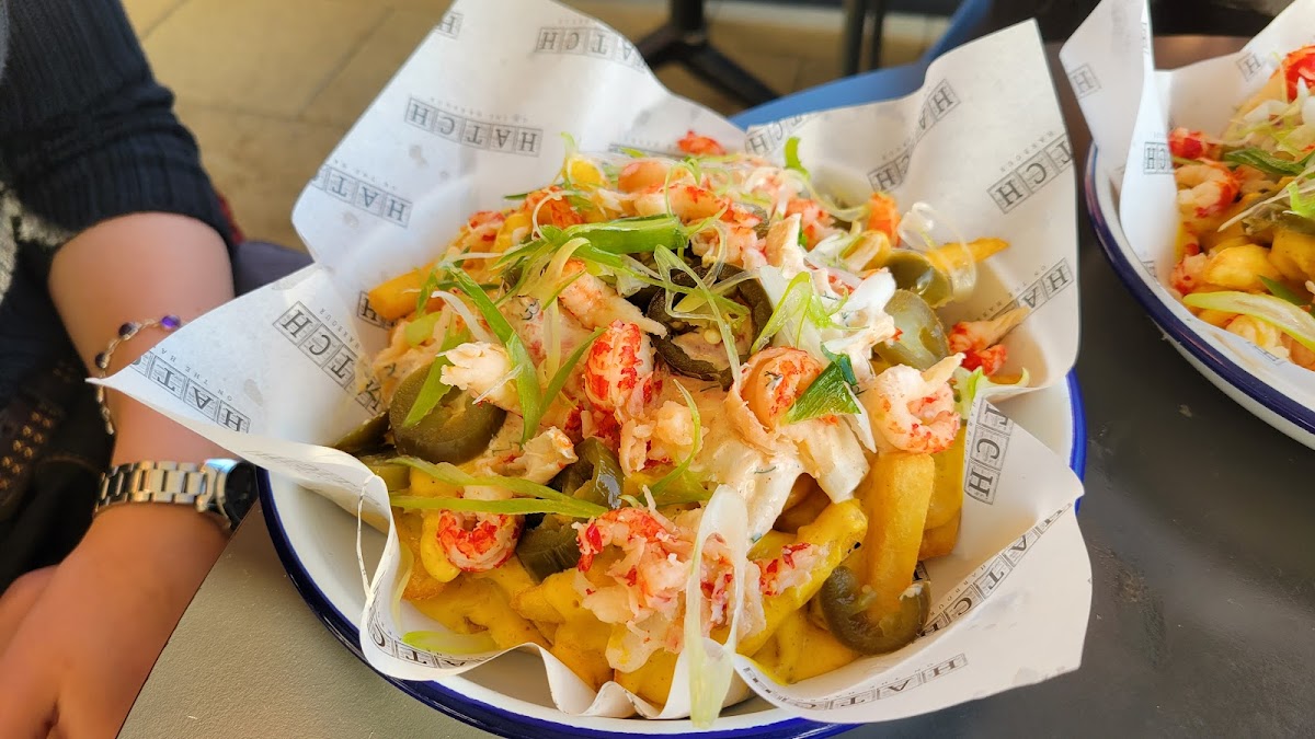 “Visited The Hatch today for a crab sandwich. After looking at the menu we decided to share the sandwich and to order the crayfish loaded fries. Both were delicious and good portions, also enjoyed a bottle of Pinot Grigio. Would recommend and probably would visit again”